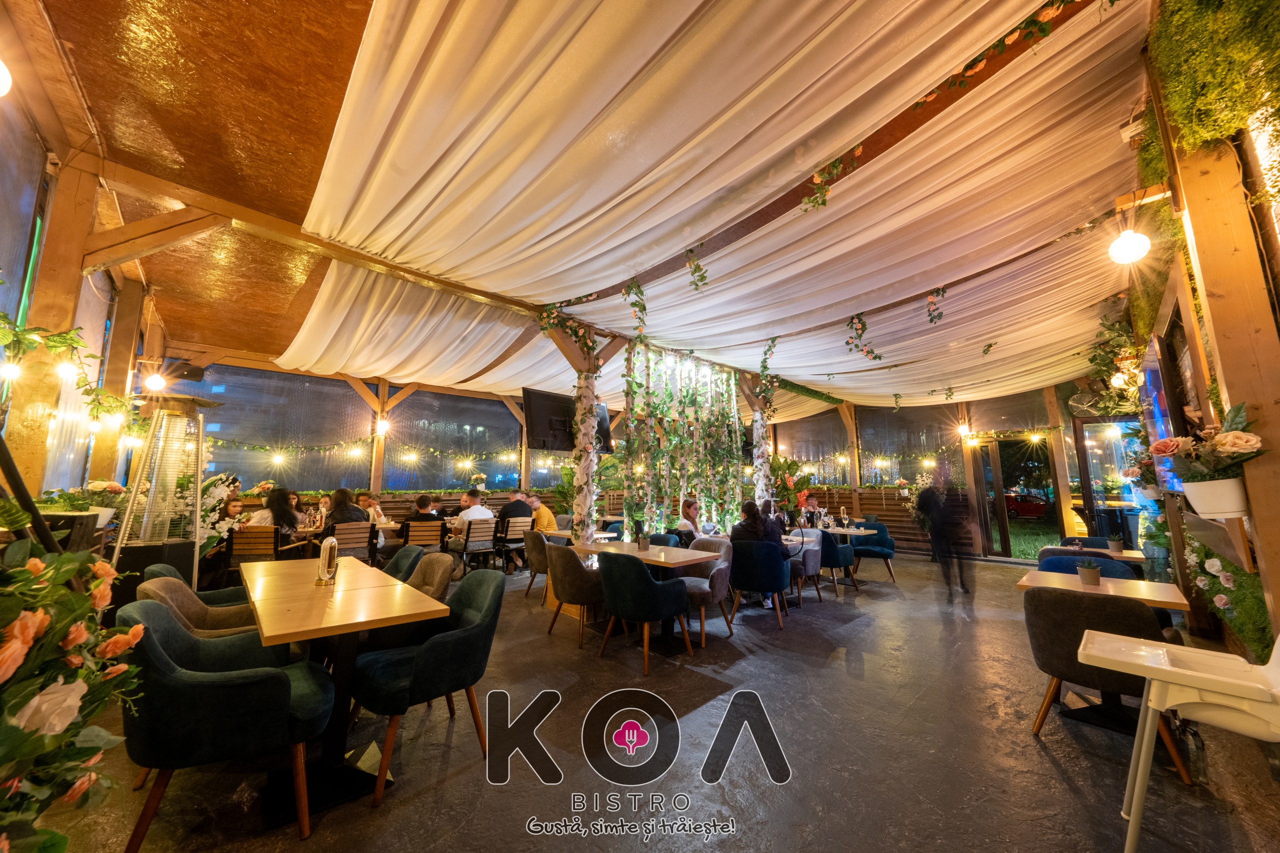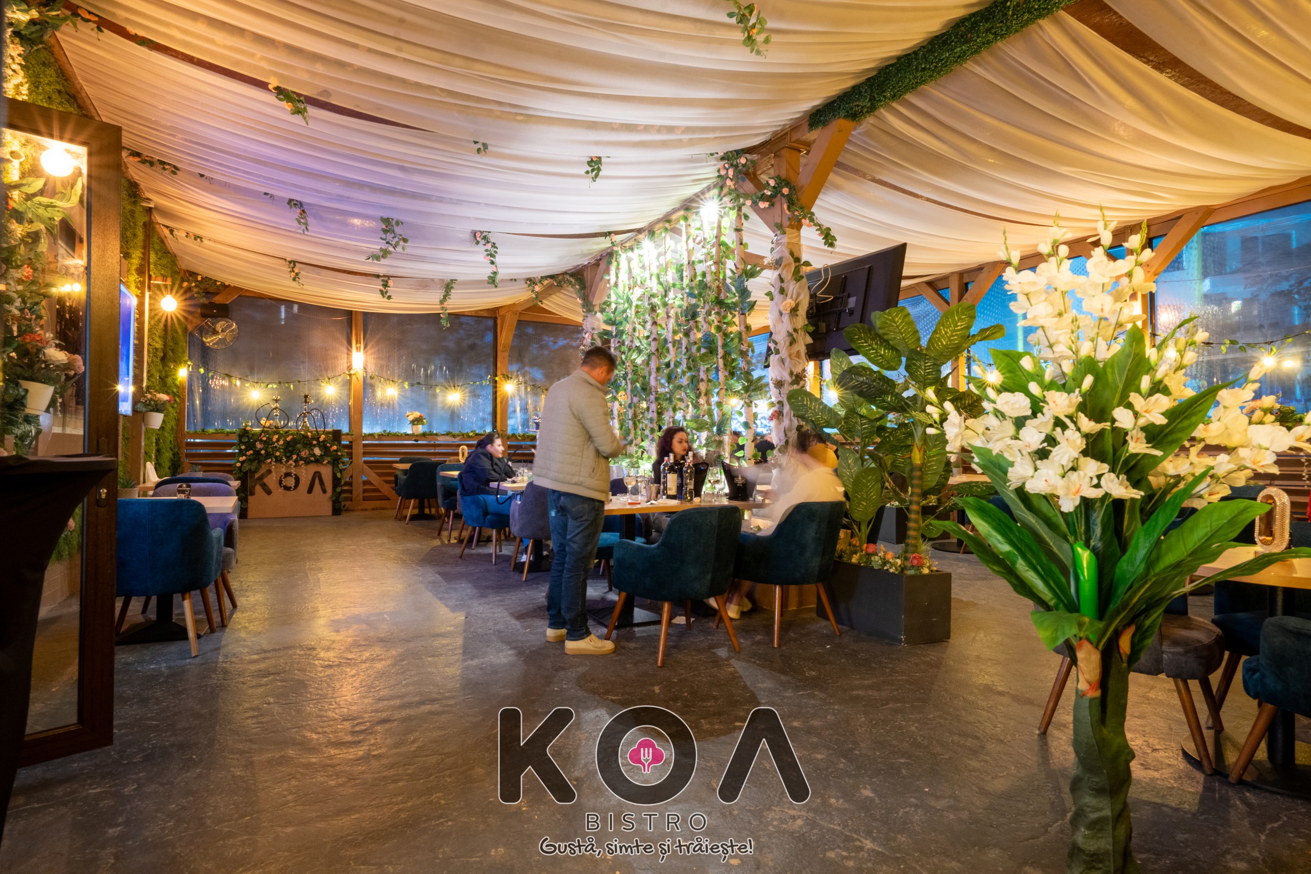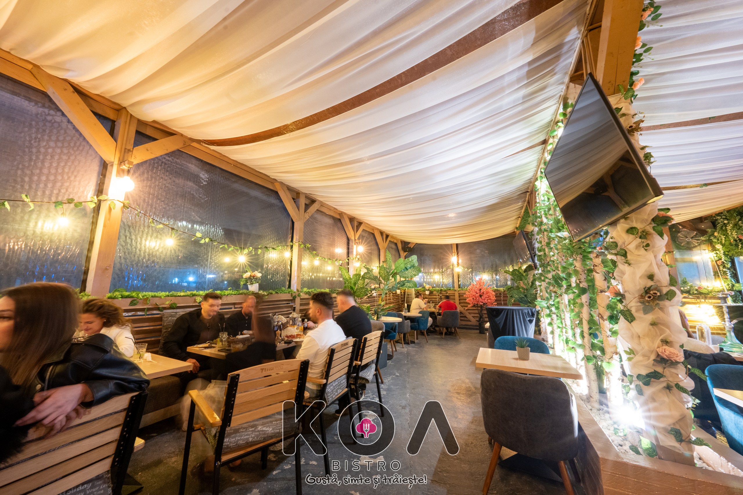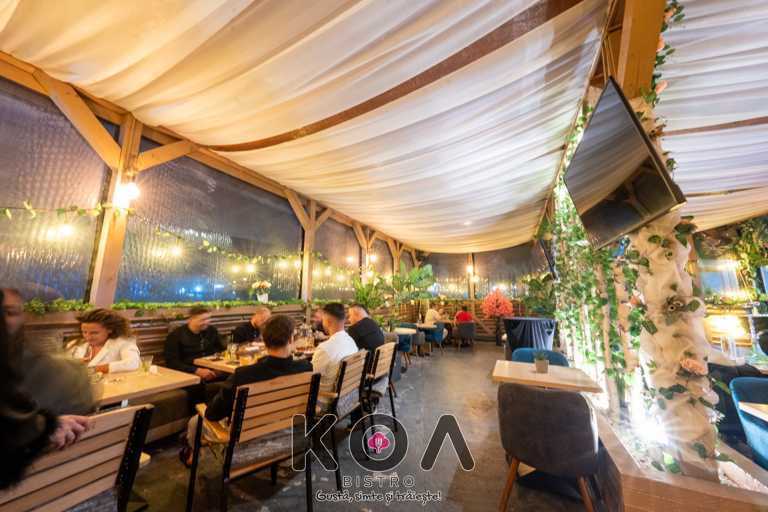 Fiecare sală este dotată cu televizoare, aer condiționat, și încălzire – perfect pentru orice anotimp. La KOA Bistro poți savura și narghilea în București, într-un ambient modern și relaxant. De asemenea, organizăm evenimente private – fie că este vorba de botez, cununie, petreceri corporate sau aniversări, ne adaptăm nevoilor tale pentru a crea momente memorabile.