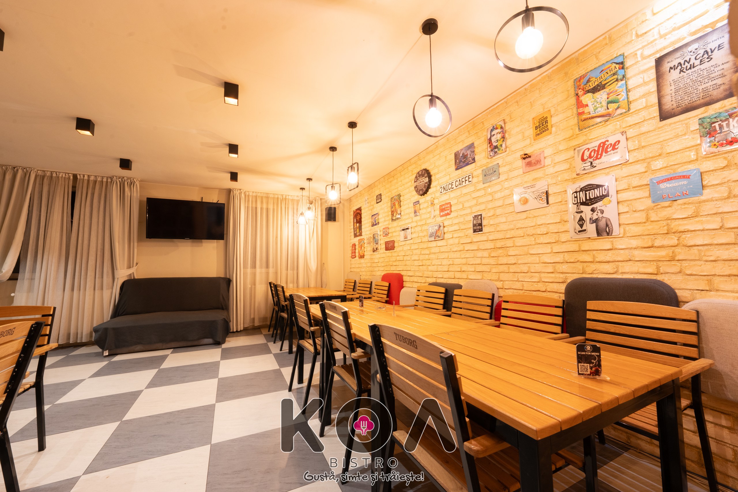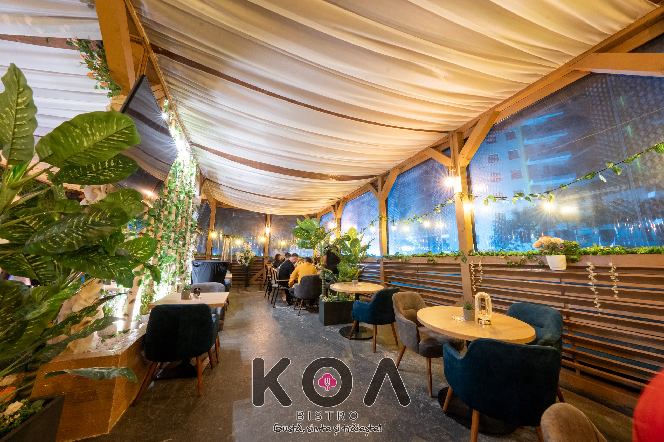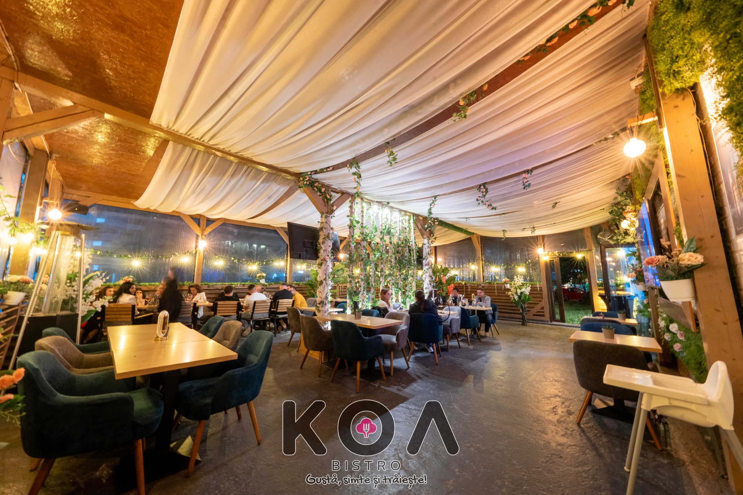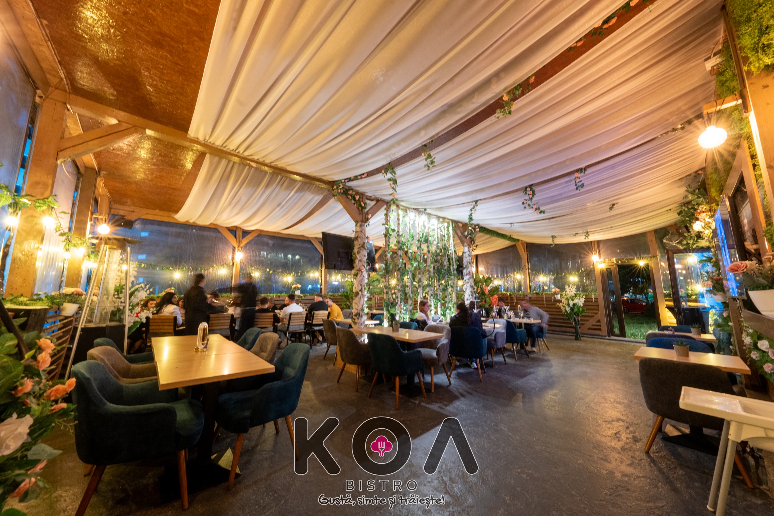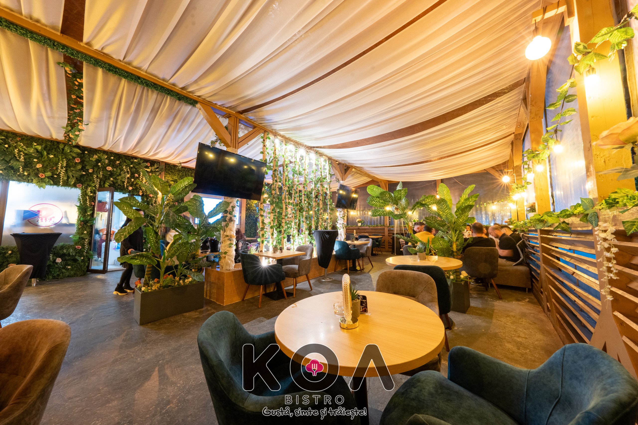 Fiecare sală este dotată cu televizoare, aer condiționat, și încălzire – perfect pentru orice anotimp. La KOA Bistro poți savura și narghilea în București, într-un ambient modern și relaxant. De asemenea, organizăm evenimente private – fie că este vorba de botez, cununie, petreceri corporate sau aniversări, ne adaptăm nevoilor tale pentru a crea momente memorabile.